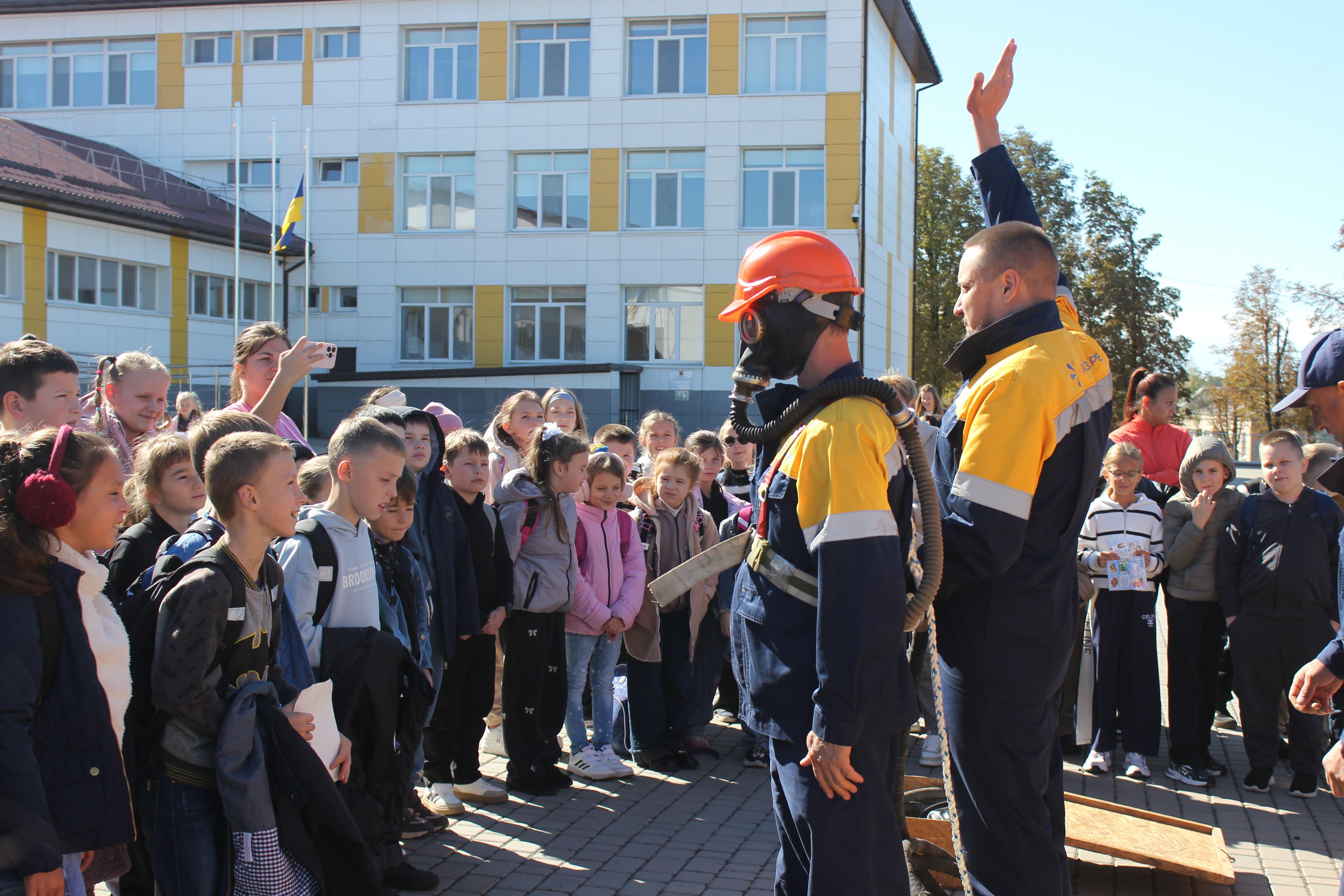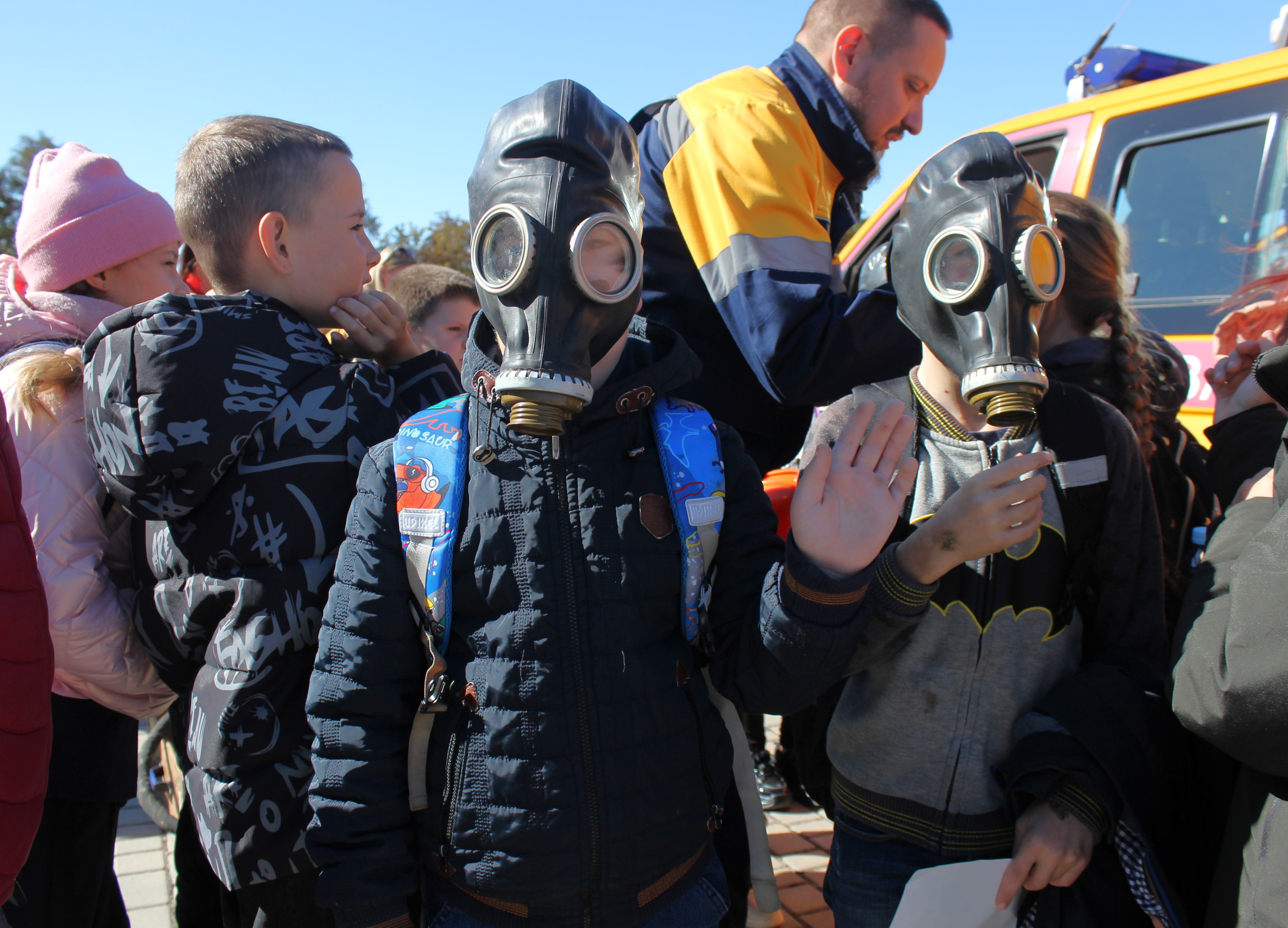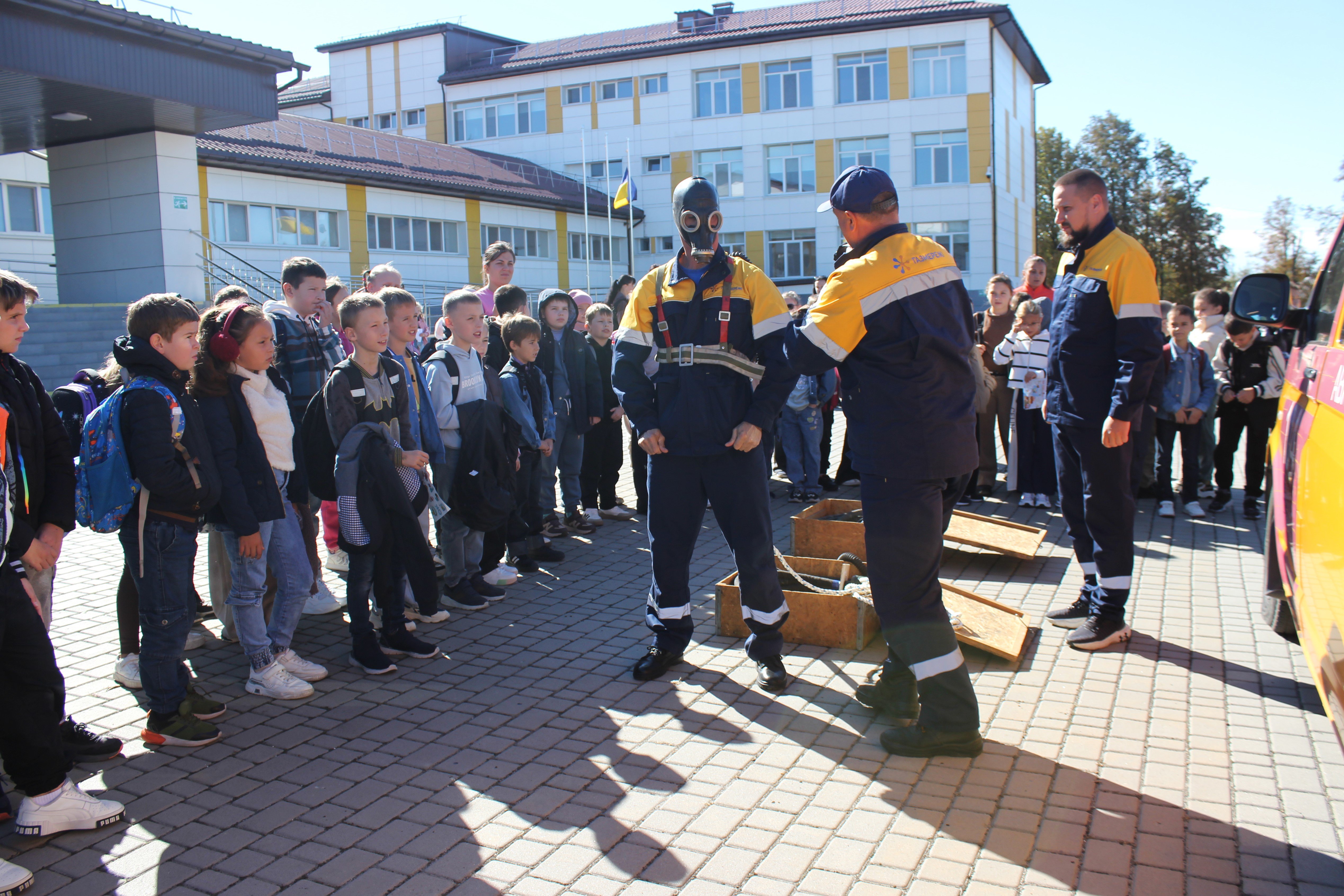 Після теорії спеціалісти провели майстер-клас, на якому показали, як правильно одягати засоби індивідуального захисту, які використовуються у загазованих приміщеннях, та допомогли дітям приміряти їх на себе.