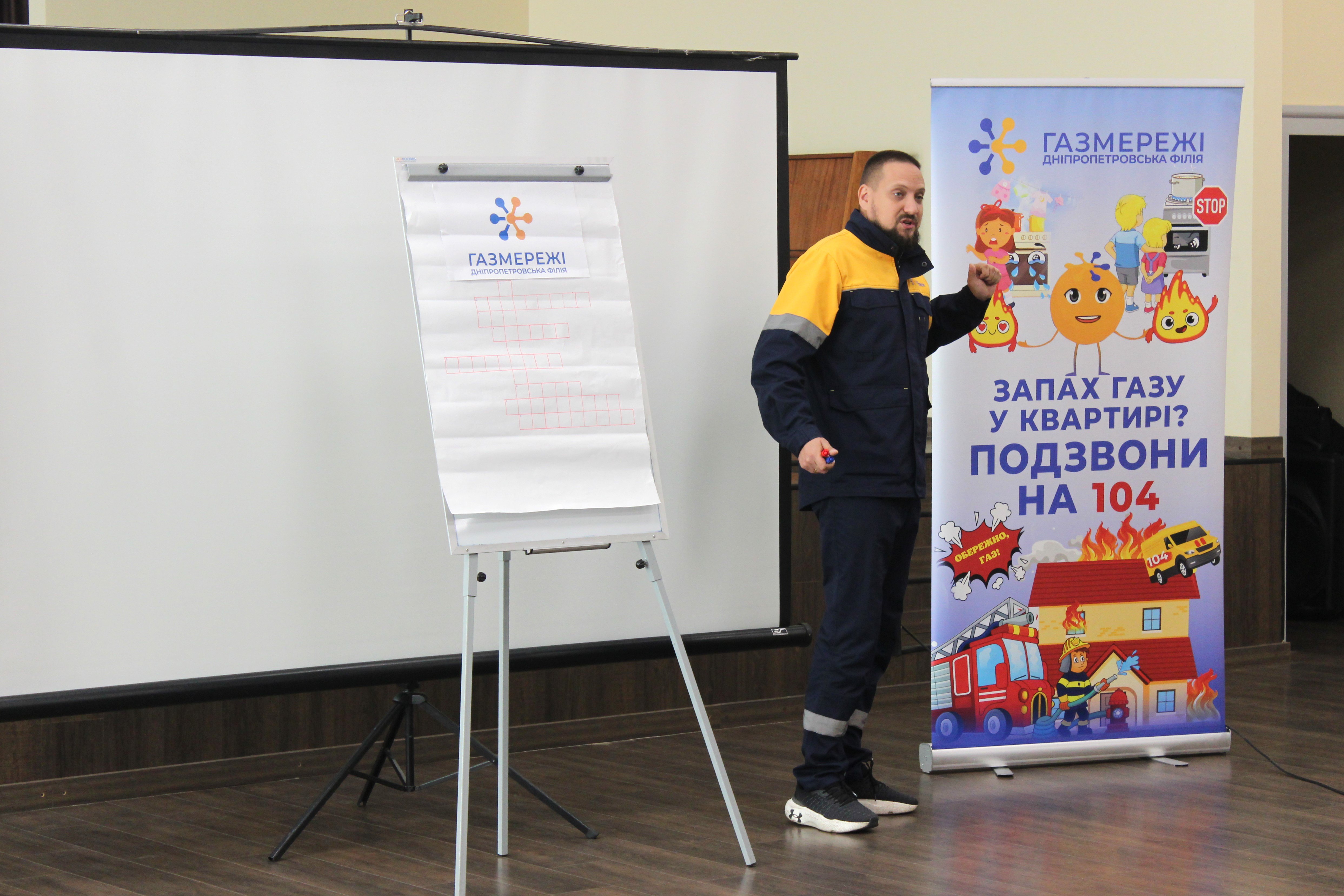 Сертифікований тренер газорозподільної компанії області Сергій Волокітін розповів школярам про природний газ: як він доходить до їхніх осель, можливу небезпеку при користуванні газом та дії у разі витоку. Діти повторили правила користування газовими приладами у побуті, а також згадали куди дзвонити у разі надзвичайних ситуацій.
