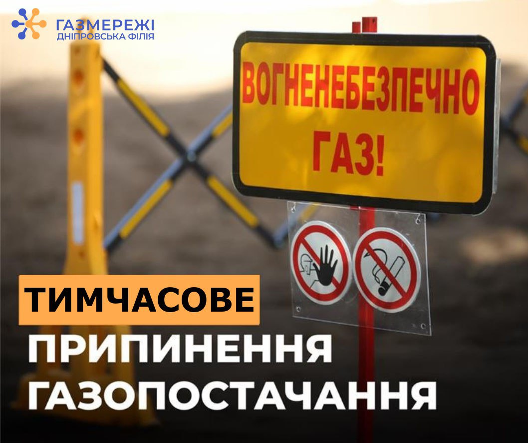 У зв'язку з виконанням ремонтних робіт на системі газопостачання Дніпра та Дніпровського району спеціалістами Дніпровської філії ТОВ «Газорозподільні мережі України» буде тимчасово обмежено розподіл природного газу для мешканців ряду житлових будинків: