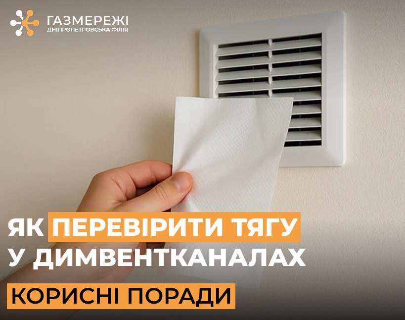Дніпропетровська філія «Газмережі» нагадує споживачам простий і безпечний спосіб перевірки: необхідно взяти невеликий аркуш паперу та піднести його до вентиляційної решітки. Якщо він притягується і тримається — все добре, тяга є. Якщо ні — тяга відсутня.