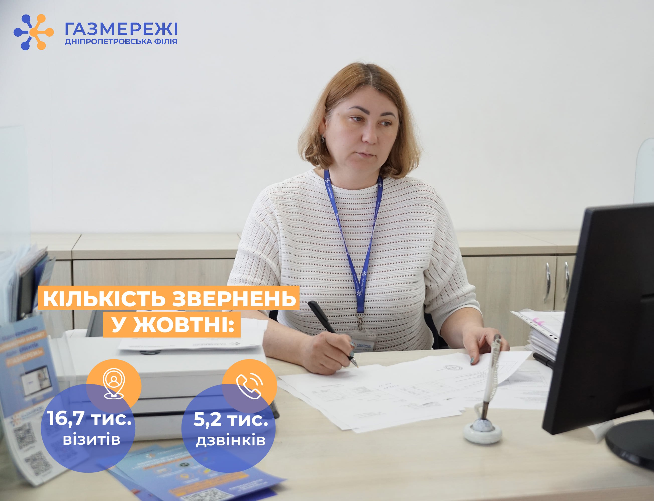 У жовтні працівники Дніпропетровської філії «Газмережі» опрацювали 21,9 тис. звернень від споживачів газу області. Серед них: